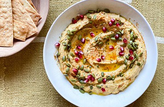 A great way to bring color to a snack board, this vibrant hummus has all traditional flavors that one would expect but with the sweet addition of winter squash.