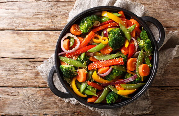 A quick and simple stir-fry. To make it a bit heartier, add cooked chicken, beef, or cubed tofu.