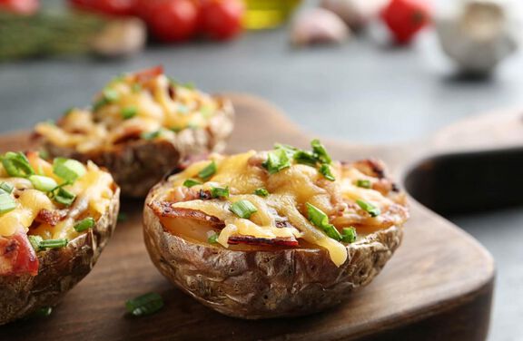 We use the leftover potato skin tops from our Twice-Baked Potatoes on page 31, but if you want to skip that and go straight to the skins, bake the potatoes as instructed in the first step of the Twice-Baked Potatoes, and then reserve those for another use.