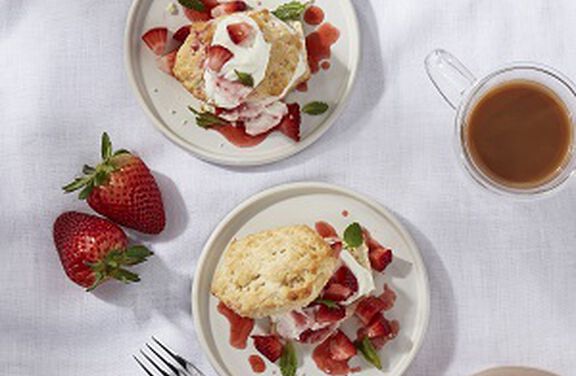 We take our All-Purpose Biscuits and sweeten them up to use as a base for these delectable Strawberry Shortcakes. While this may be dessert for some, they could easily be a featured player on a brunch table!