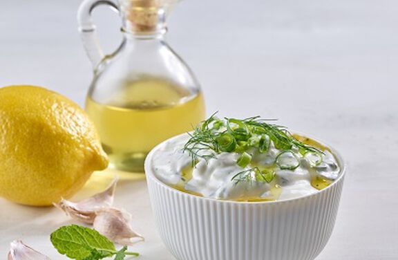 The Greek cousin of raita, this sauce benefits from time in the refrigerator so the flavorscan develop. For a thicker consistency, drain the yogurt in the refrigerator overnight beforeproceeding to step 2.