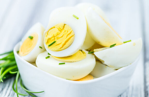 The timing in this recipe is for a true hard-boiled egg. To have it a little less done, just reduce the time slightly, about 4 minutes for a mediumcooked egg.