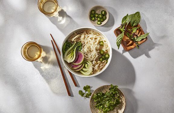 Traditional Vietnamese pho simmers for hours and is constantly skimmed to create adeep-flavored, clear broth. Our version is lighter, but takes a fraction of the time and isjust as comforting.