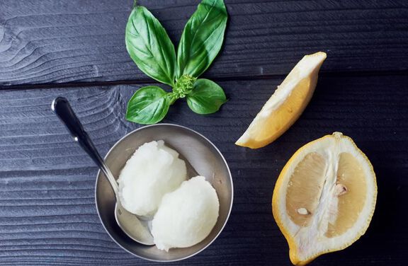The basil adds a nice undertone to the sorbet, but any one of your favorite herbs could be substituted.