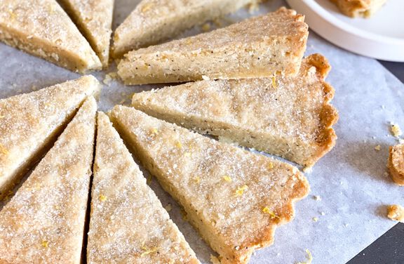 Lemon and poppy seeds are a common combination for good reason. Here they are highlighted in this very buttery shortbread. Do not skimp on the quality of butter it really makes a difference.