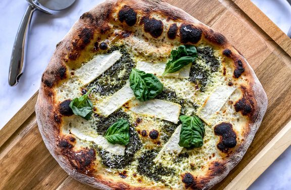 Fresh pesto is the perfect ingredient for homemade pizza.