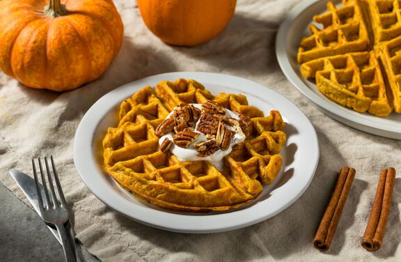 A fun twist on French toast. We recommend a lower setting for these “waffles,” so not to dry out the bread while cooking.