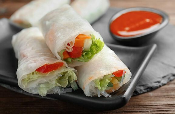 Daikon, also known as Chinese radish or winter radish, makes an excellent and nutritious substitute in these rolls, which are traditionally stuffed with rice noodles