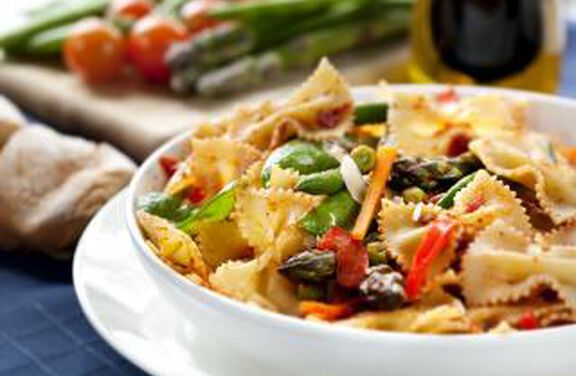 This colorful pasta dish is simple to prepare, even after work. The Parmesan and garlic complement the vegetables for a tasty main course.