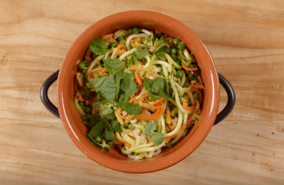 Zucchini stands in for pasta in this bright, veggie-loaded dish.