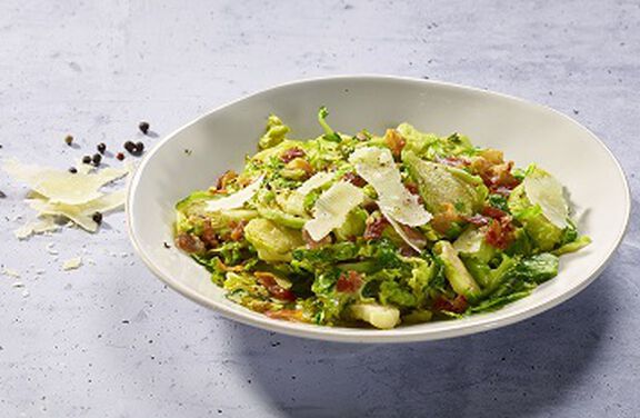 A perfect side dish to any meal – the saltiness of the pancetta complements the earthiness of the sprouts, and a finish of red wine vinegar provides an unexpected, but welcome tang.