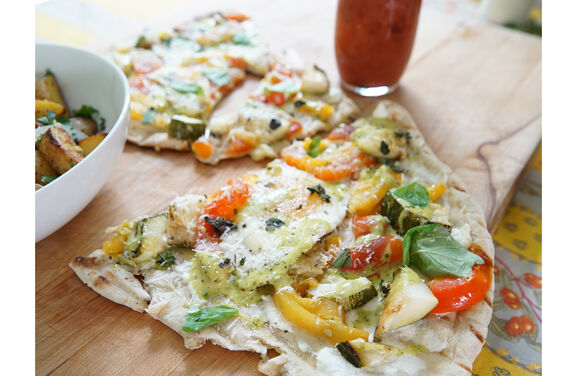 I mean who doesn’t love pizza?! This is an easy, prep-ahead grilled pizza that makes a fun, handheld, ‘shove-it-in-your-mouth’ extravaganza. The pizza dough is crisped up on the Woodcreek 4-in-1 pellet grill, smothered with smoked vegetables, drizzled with a tangy green goddess hollandaise and topped with a chopped bitter green salad for a contrast in flavors and texture.A recipe from the Sizzle & Smoke Backyard BBQ recipe series on the Cuisinart Woodcreek 4-in-1 Pellet Grill with Full Heart Hospitality, featuring Chef Matt Jennings and Mixologist Silas Axtell.