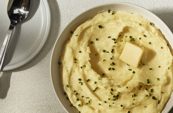 These lower fat mashed potatoes are still rich and delicious.