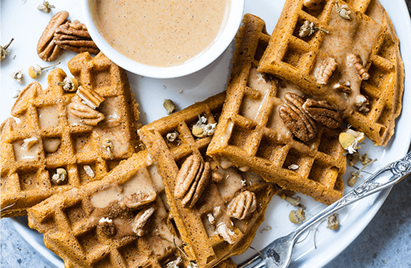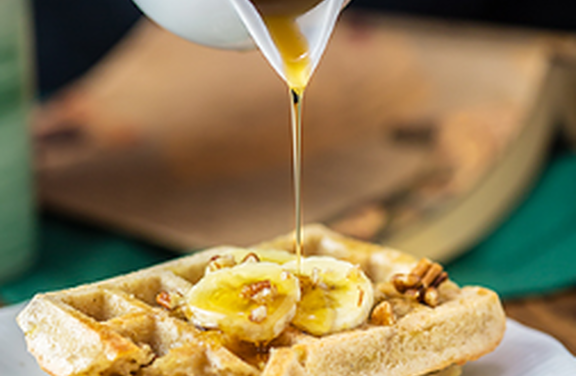 Puréed fruit adds lightness and delicate flavor to baked waffles.